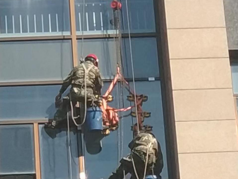 奉賢區檢測中心幕墻玻璃更換施工現場照。