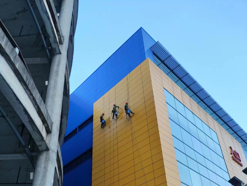 外墻清洗項目:宜家家居(上海寶山商場)位于寶山區滬太路1818號(近汶水路),宜家寶山商場35,000平方米的營業面積,給您舒適的購物體驗,9500多種產品,滿足您日常家居生活需要,65個展間,813個座位的餐廳,并有1207個停車位。宜家家居(上海寶山商場)外墻清洗施工現場照片。
