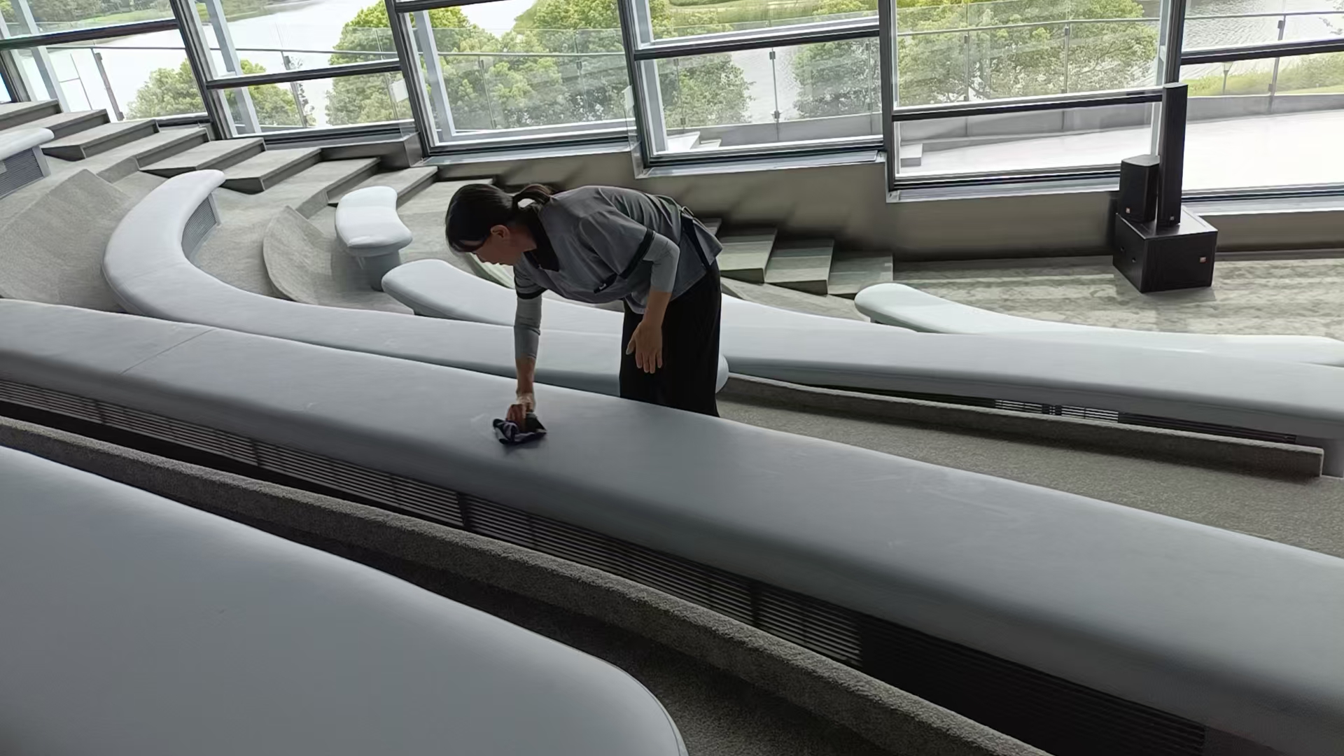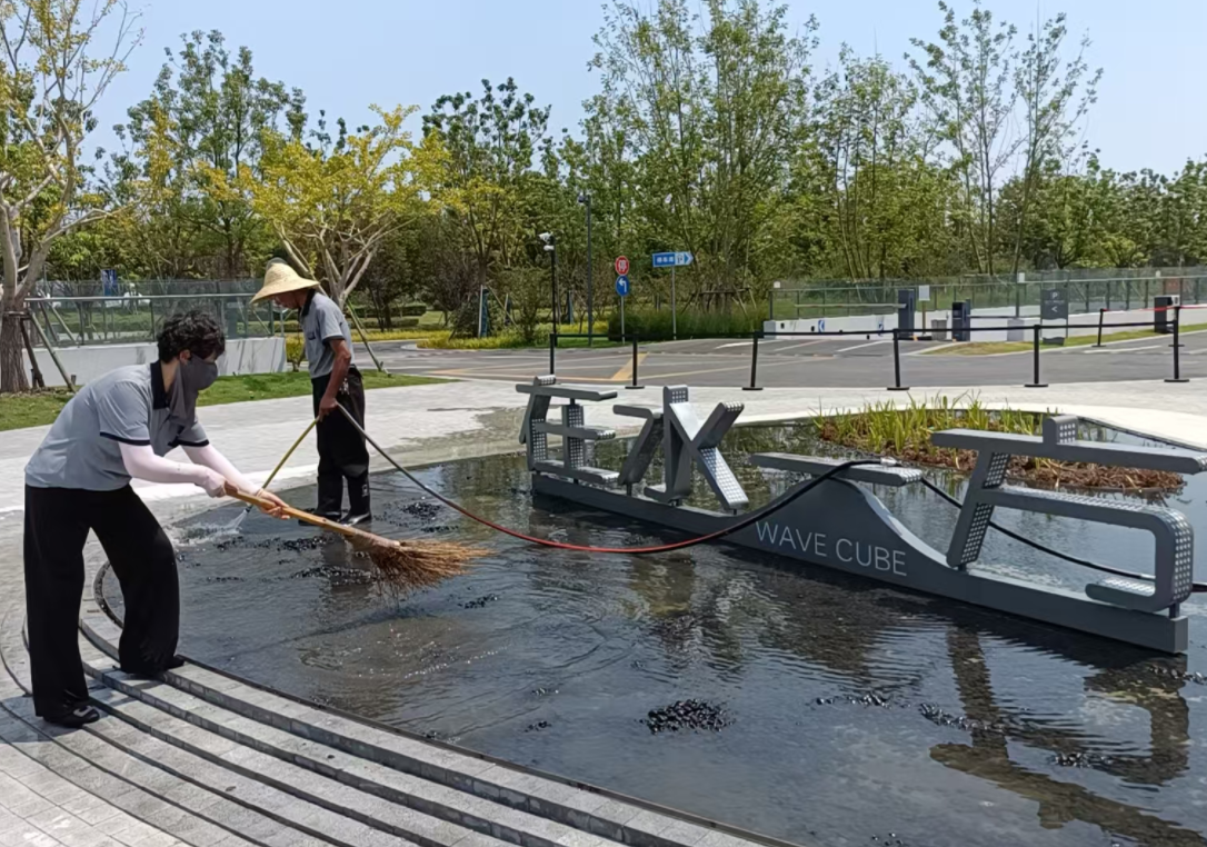 • “在水一方”科幻館是位于上海奉賢新城金海湖畔(具體地址為奉賢區金海街道湖畔路259號)的一座大型沉浸式科幻主題文旅綜合體。該項目于2025年建成,并于同年7月5日正式對公眾開放。場館總建筑面積約2.97萬平方米,建筑高度19.8米,占地面積1.68萬平方米。其最大的建筑特色是采用了80米見方的雙殼體懸挑結構,懸挑長度達30米,并于2025年3月12日獲得了大世界基尼斯“最大的雙殼體結構科幻館”認證。從空中俯瞰,建筑形態猶如一枚懸浮于湖面的“宇宙水滴我司已正式承接并全面負責該項目的日常保潔服務。